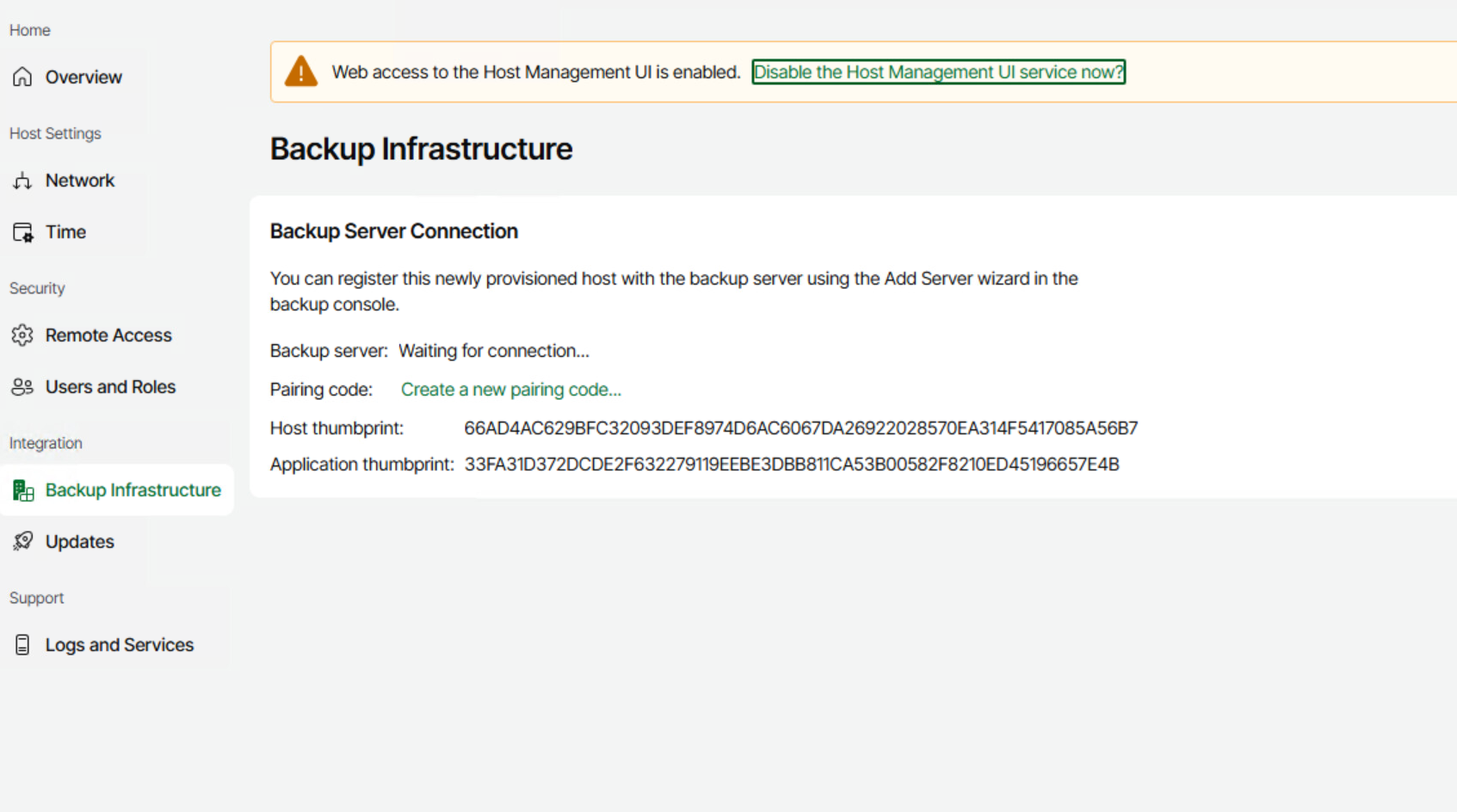 - Ve webovém UI konfigurace VHR povolíme párování