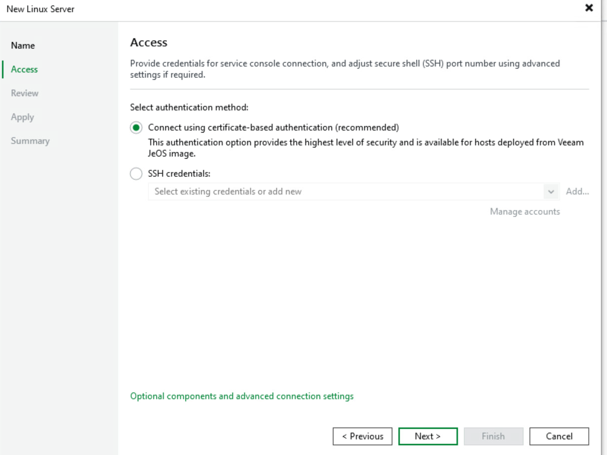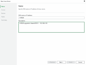 - Nyní již můžeme ve VBR připojit Linux Server pro VHR