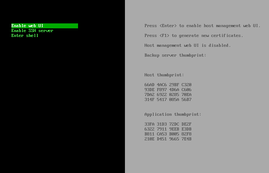 - Než půjdeme připojit VHR JEOS 13 do VBR, ještě si zkontrolujeme v konzoli adresu a v konzoli si zapneme UI
