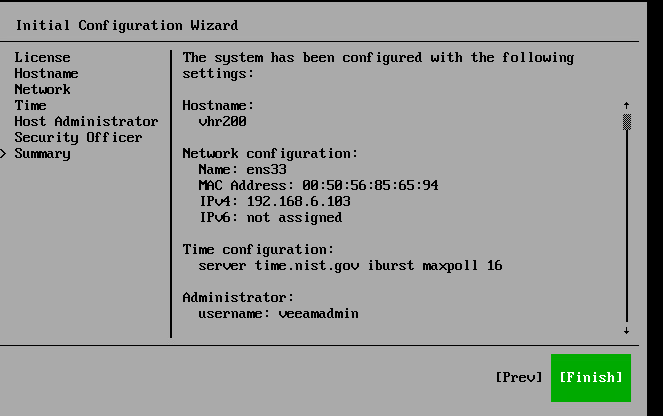 - Nastavíme Hostname, network nastavení, heslo pro veeamadmin a heslo pro veeamso včetně možnosti zapnutí MFA