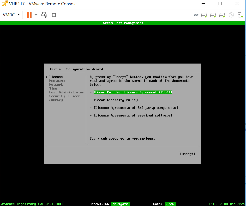 Veeam Hardened Repository (VHR) verze 2.0 a pokud chcete ho upgradovat na Veeam 13 JustEnoughOS (JEOS). V lednu 2025 vyšla verze Veeam Hardened Repository ISO 2.0.0.8. Tuto verzi jsem měl připojenou ve Veeam 12 a následně jsem toto Windows Veeam Backup and Replication 12(VBR) upgradoval na Veeam 13 pro Windows. VHR 2.0 nadále fungovalo. Jelikož ve verzi 13 dochází ke změně ověřování VHR vůči VBR a již se neověřujeme Single=use credentials for hardned repository. Připojujeme se Connect using certificate-based authetication. Je proces upgradu VHR 2.0 trochu komplikovanější a není to jen čístý upgrade, ale vyžaduje to další kroky, které si zde popíšeme.